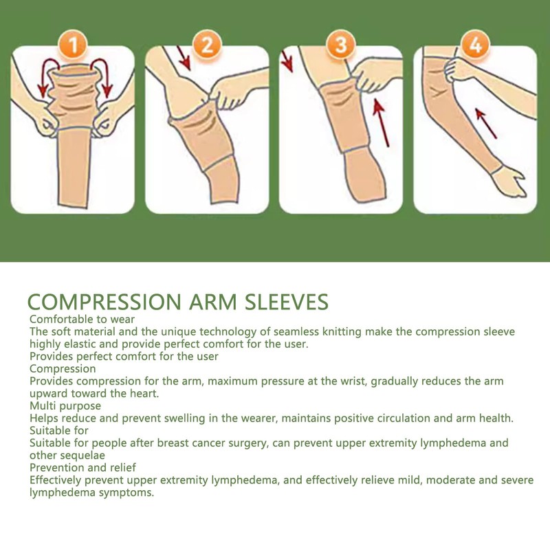 - ADECUADO PARA: El soporte de las mangas de compresión para brazos es adecuado para personas después de una cirugía de cáncer de pecho, puede prevenir efectos secundarios como el linfedema en las extremidades superiores.