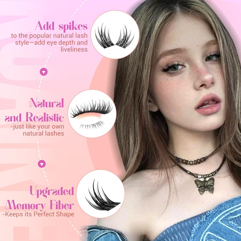 - 1.Anime Lashes Clusters with Bottom Lashes: Manga individual lashes adopt a spiky design paired with bottom lashes, easily achieving the effect of manga eyes. The tips of the eyelash clusters are ultra-fine, precisely enlarging the eyes, and making your eyes more eye-catching and three-dimensional after lash extensions.