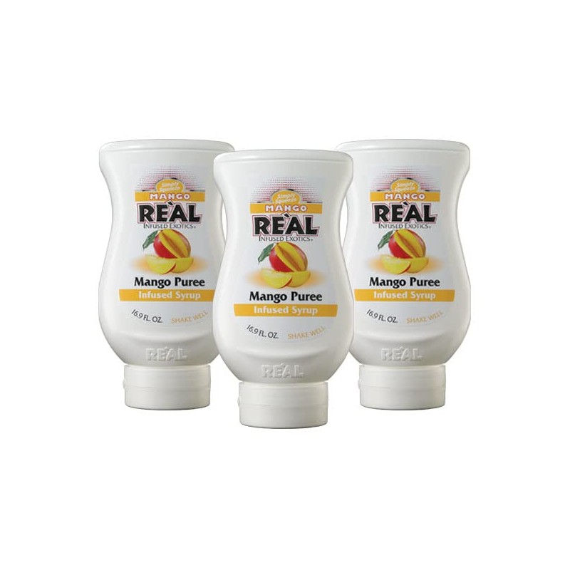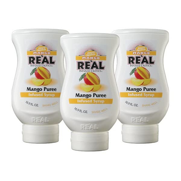 Mango Reàl Infused Exotics, Mango Puree Infused Syrup, 16.9 FL OZ Squeezable Bottle (Pack of 3)