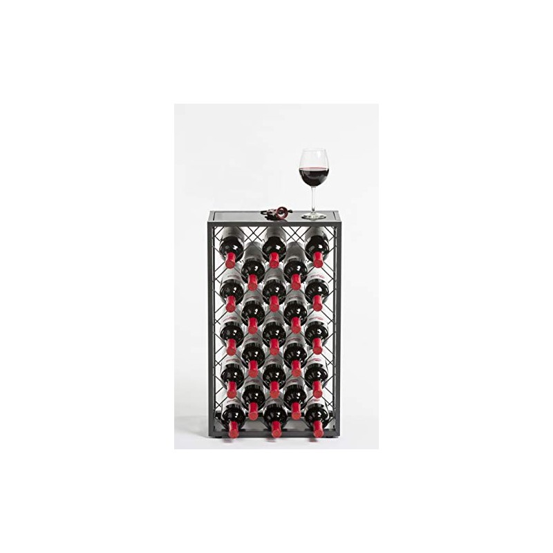 Mango Steam 23 Bottle Wine Rack with Glass Table Top, Pewter