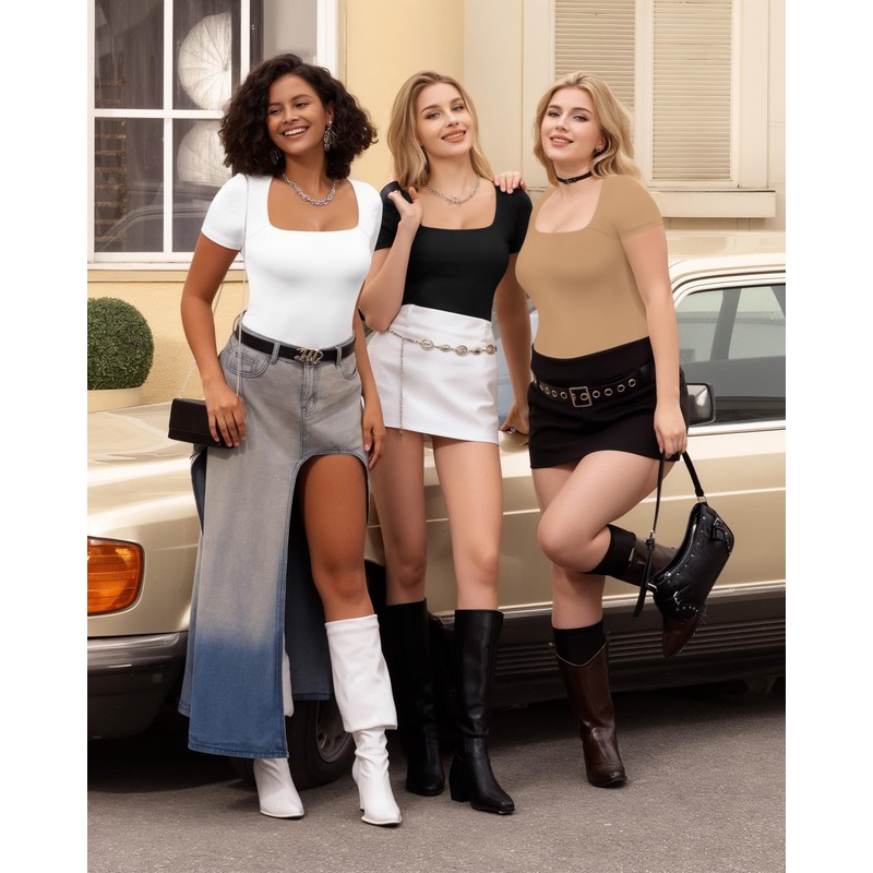 Womens body suit is designed to enhance your natural beauty and flatter your figure. Square neck adds a touch of sophistication, perfectly blend of sophistication and allure. while the short sleeves offer comfort and versatility.