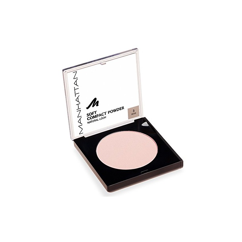 Lieferumfang: 1 x Manhattan Soft Compact Powder in der Farbe Beige - 9 g / Kompaktpuder für samtig matten Teint, mit Make-up-Schwämmchen / Für mittlere Haut