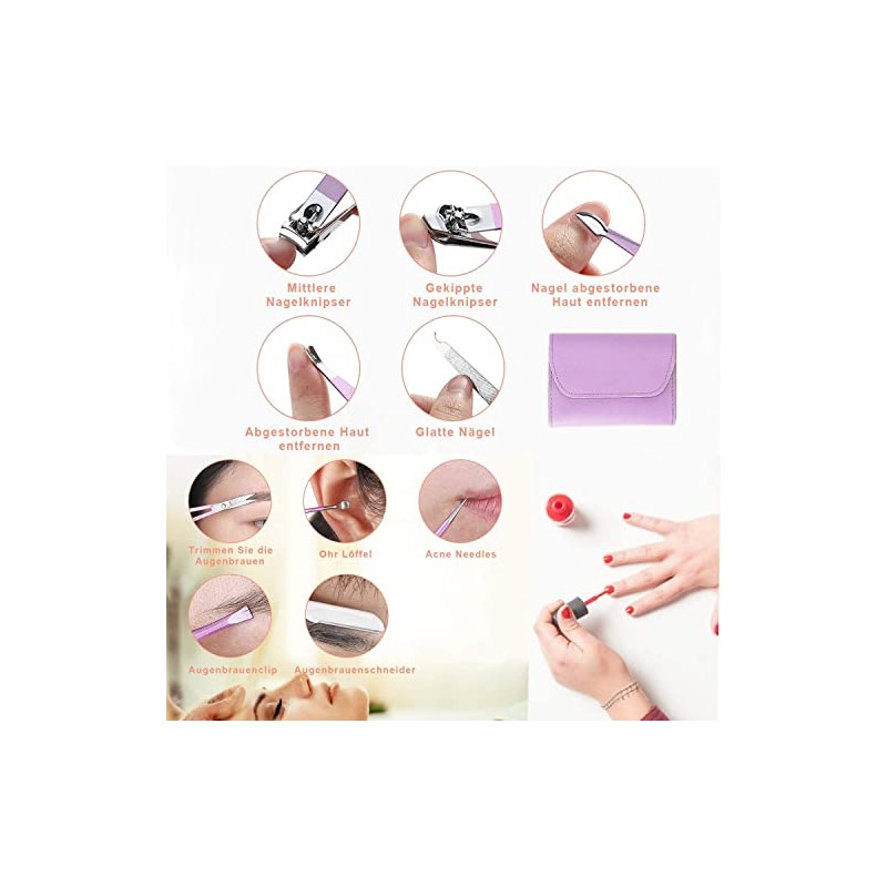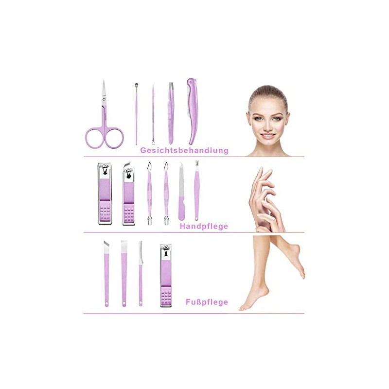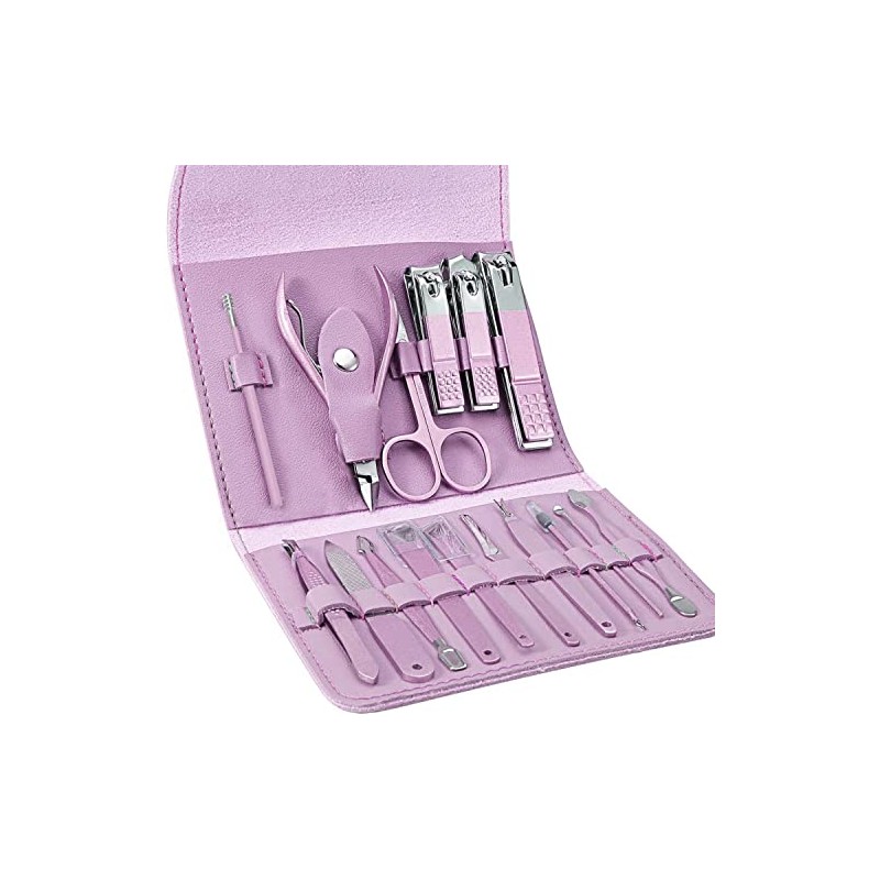 Manicura Set 16 en 1 manicure kit acero inoxidable manicura y pedicura, conjunto de uñas de acero inoxidable, conjunto profesional de corte de uñas de belleza (Púrpura)