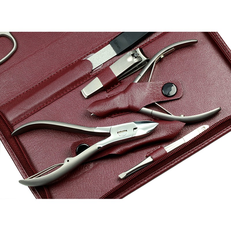 Manicure Case, Nappa Full Cowhide Leather, Bordeaux, Rustproof, 1 Item