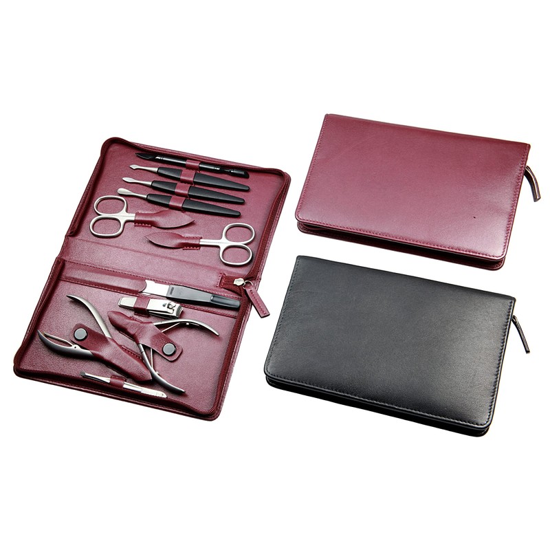 - Contents of the manicure case - nail scissors, cuticle scissors, nail clippers, nail clippers, tweezers, file, cuticle pusher, nail knife, nail cleaner and manicure hoof stick includes the practical set