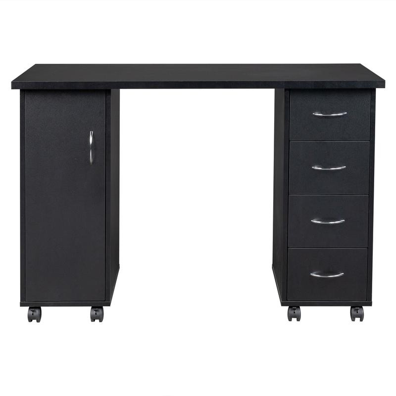 Manicure Table MDF Single Door 4 Drawers With Fan Nail Desk, Makeup Dressing Nail Station with Storage Cabinets, Acetone-Resistant Nail Tech Table for Spa Beauty Salon - Color: Black-No Fan