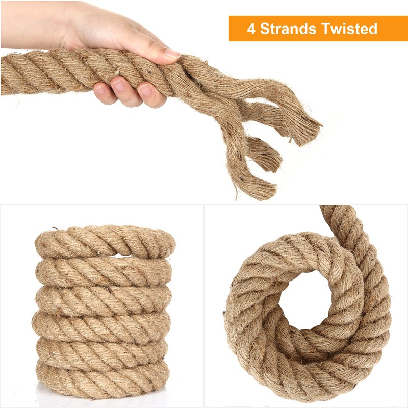 - Heavy Duty Hemp Rope - This manila hemp rope made from natural jute fiber material, eco-friendly hemp rope; 4 strands twisted manila rope to ensure the durability and flexibility