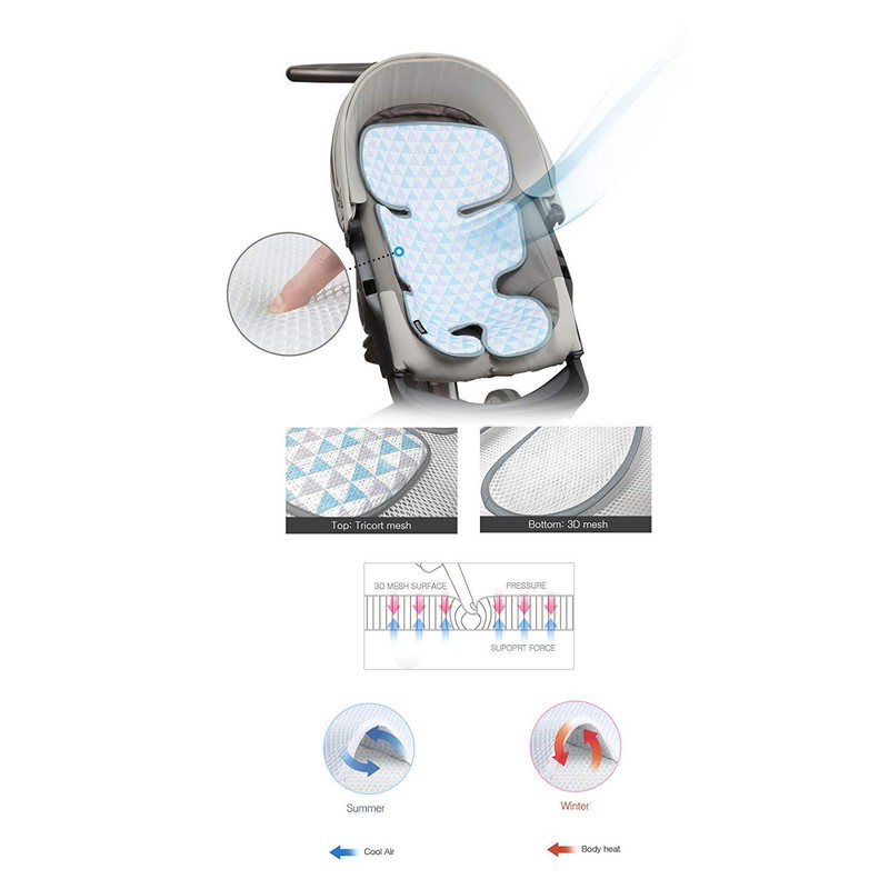 Manito Clean Basic Seat Pad for Strollers and Car Seats is all year-round breathable seat liner for your child's comfortable and dry riding experience. Its Sequential 3D-Mesh construction is breathable, wicks away moisture and provides excellent air circulation keeping the seat cool during summer and circulates warm air from the body heat during winter. At the same time by applying Tricot mesh on one side of the seat pad, it provides breathable smooth surface.