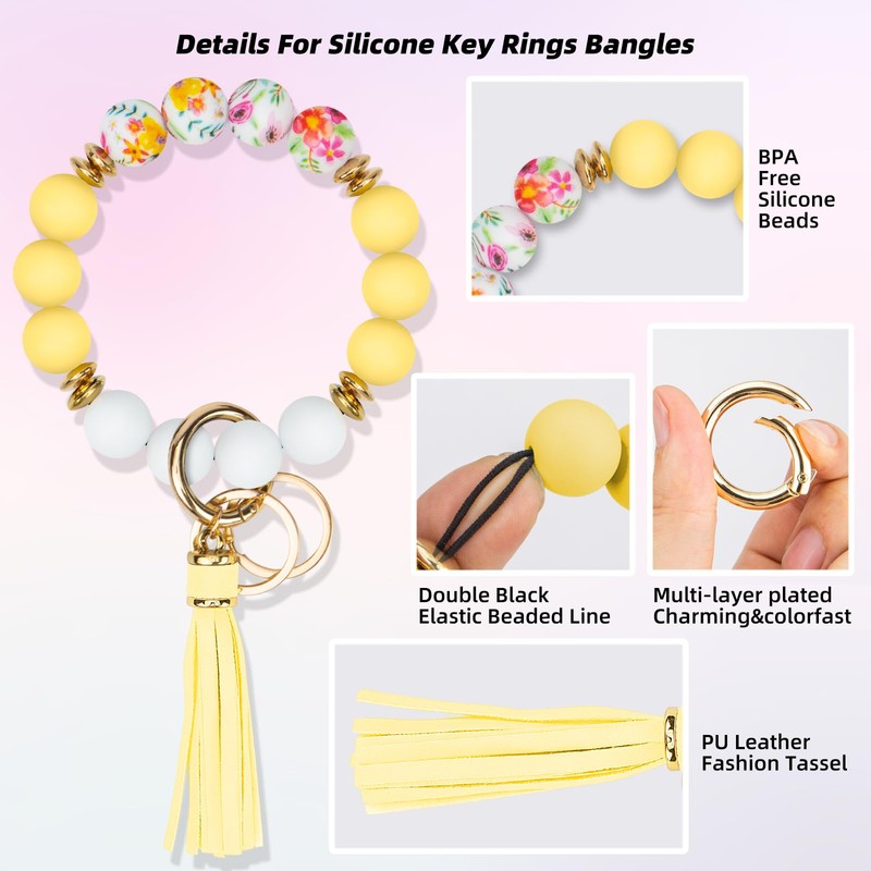 - [Fashion design] Designed for hands free access to your keys! This wristlet key ring bracelet is stretchy to easily slip on your wrist and one size fits most. Silicone bead key rings are super easy to feel when lost in the bottom of that big purse or bag and won't break when dropped. Awesome when you don't have that extra hand but need to keep your keys accessible!!!