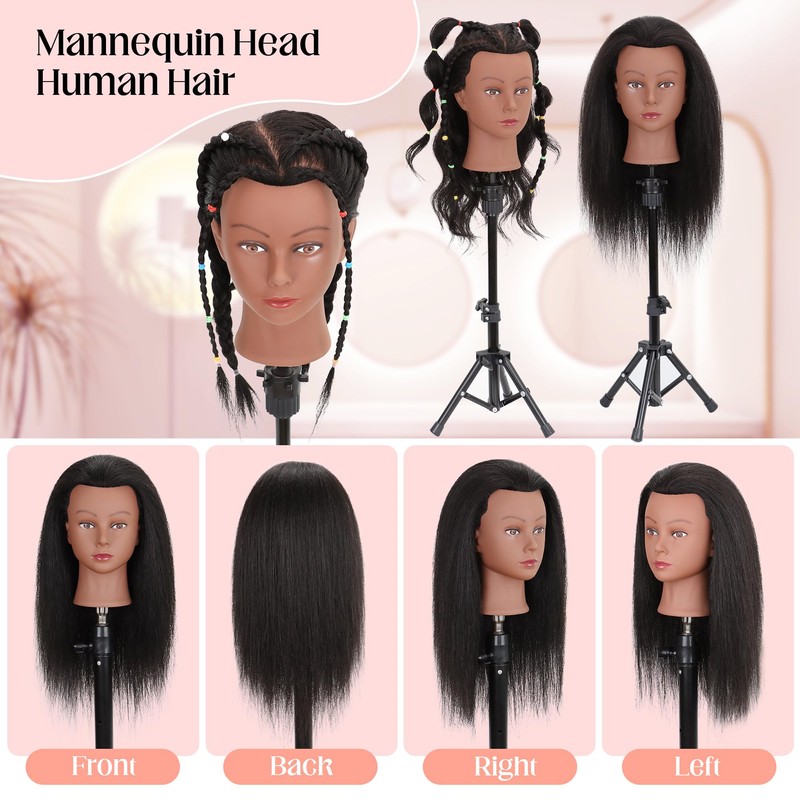 - 【Multi-functional】: Cosmetology mannequin head with human hair suitable for washing/conditioning, curling/straightening, bleaching, cutting, braiding and hair-styling.