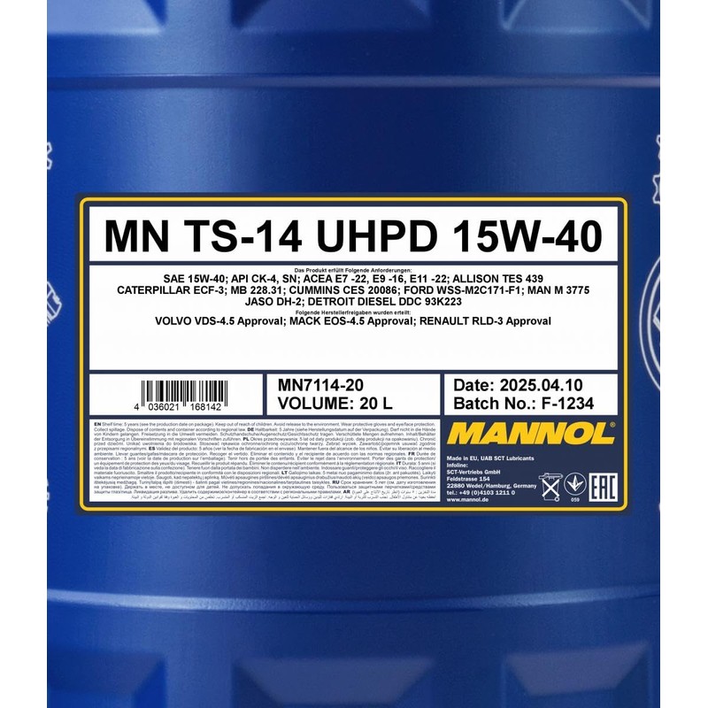 MANNOL MOTOR SYNTHETIC OILS 15W40 FOR TRUCKS AND BUSES - MN7114 (20L)