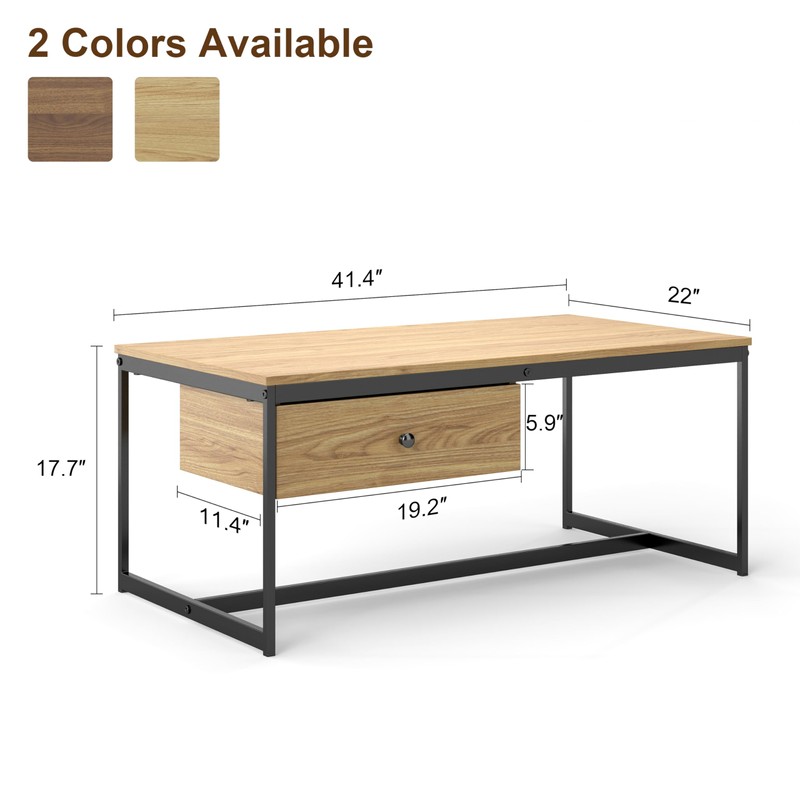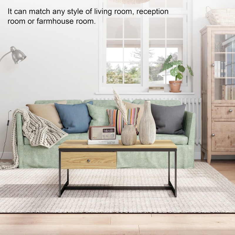 Manora Minimalist Coffee Table with Drawer, Modern Industrial Aesthetic Center Table for Living Room, Stylish Wood Modern Coffee Table with Storage, Light Brown