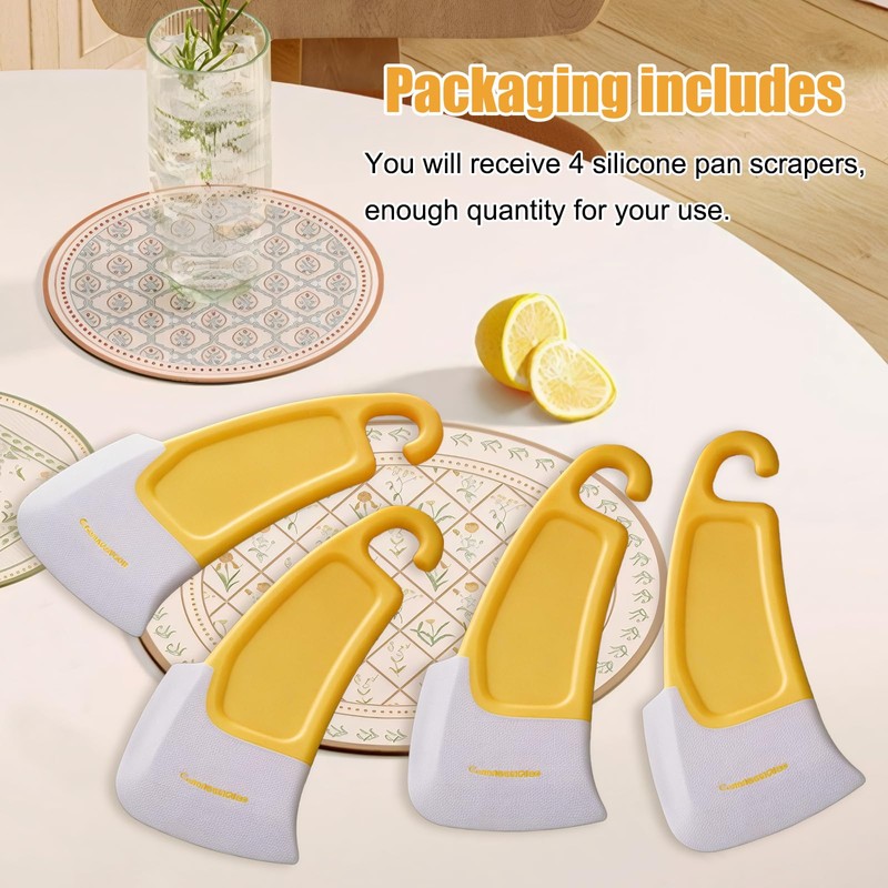 - 2.Packaging includes:You will receive 4 silicone pan scrapers, Size:13.5*5 cm, in that is easy to grip, enough quantity for your use.