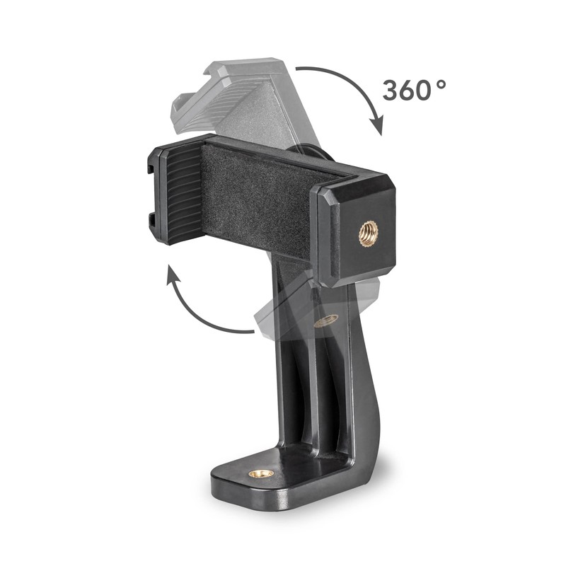 - Spring-loaded smartphone holder, 360° rotatable, swivel from horizontal to vertical and back in seconds; can be fixed at all angles