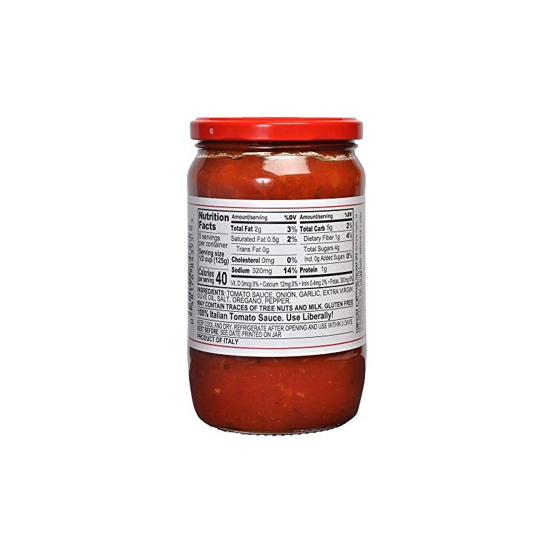 - TOMATO Sauce, Onion, Garlic, EXTRA VIRGIN Olive oil, SALT, OREGANO, PEPPER