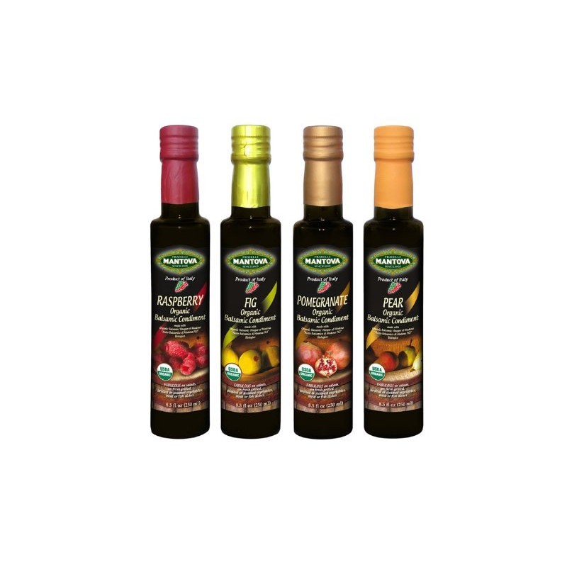 Mantova Organic Flavored Balsamic Vinegar of Modena 4-Variety Pack: Fig Pear ...