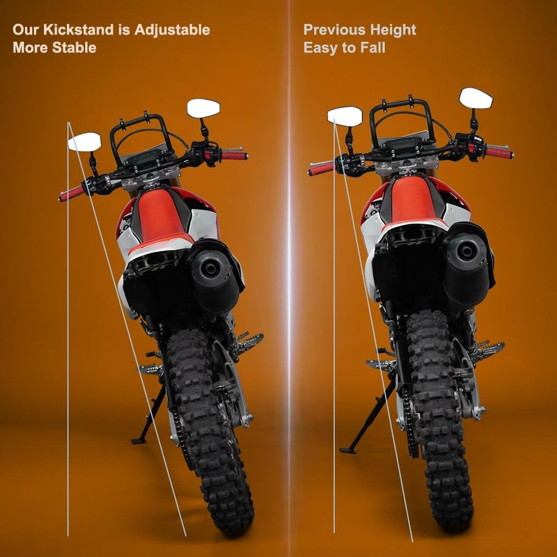 • Advantages: If You Installed the Lowering Links on Your Bike, Use Side Stand with Adjustable Function on the Bike Will Make It Parking More Stable. More Larger Touching Space, Not Easily Sink Into the Soft Earth