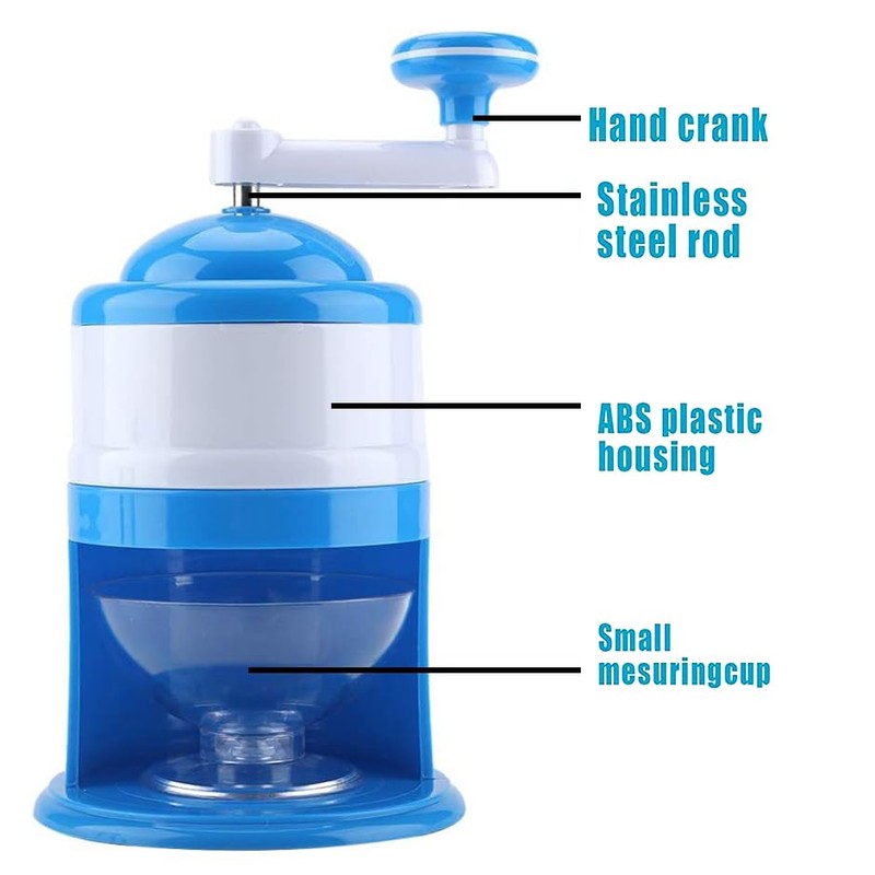 - Efficient Design: Stainless steel blades effortlessly crush ice cubes into fluffy shavings with a simple hand-crank mechanism.