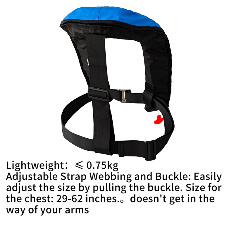 - Comfortable fit: This inflatable life jacket comes with an adjustable waist belt and is suitable for users aged 16 and above, weighing over 80 pounds. Suitable for users with a chest circumference of "30-52". Front buckle closure can be opened with one hand operation.