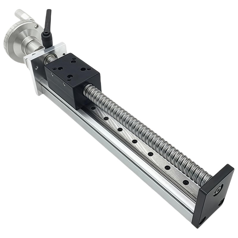 - Ballscrew type: SFU1605 (Screw Diameter 0.6 inch/16mm, Pitch 0.2 inch/5mm, the screw rod rotates once and the panel moves 0.2 inch/5mm). Ballscrew Repeat positioning accuracy: 0.02-0.03mm. Ballscrew accuracy: C7 level.