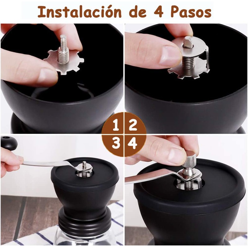 El molinillo de mano es de fácil almacenamiento con el mango extraíble. La base antideslizante y el agarre facilitan el molido. Limpie el molinillo a fondo después de cada uso para asegurarse de que el café esté fresco y con sabor.