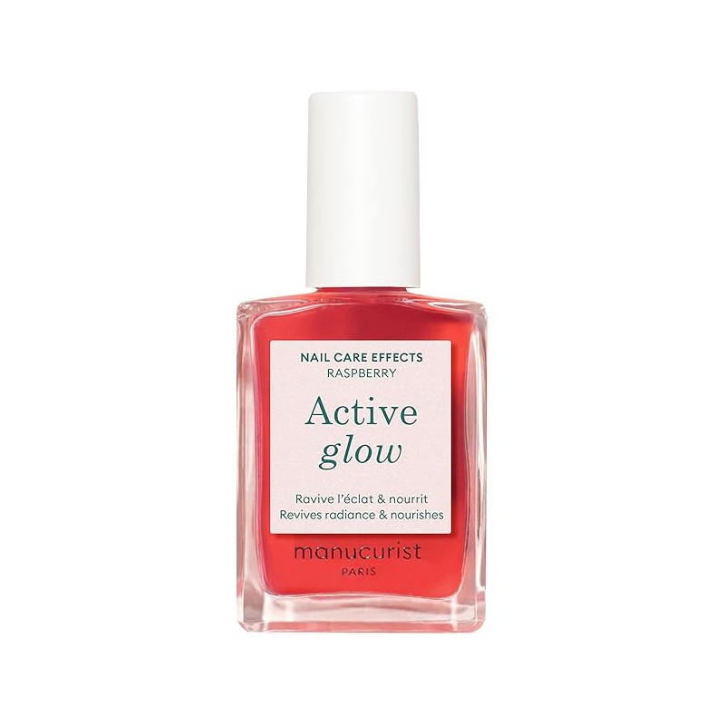 Manucurist Active Glow™ Raspberry Nail Polish & Care - Ultra-Glowy 2 in 1 Nail Concealer & Care - Plant-Based Ingredients: Sweet Almond Oil, Raspberry for Nourished Nail Rosy Mirror-Like Shine