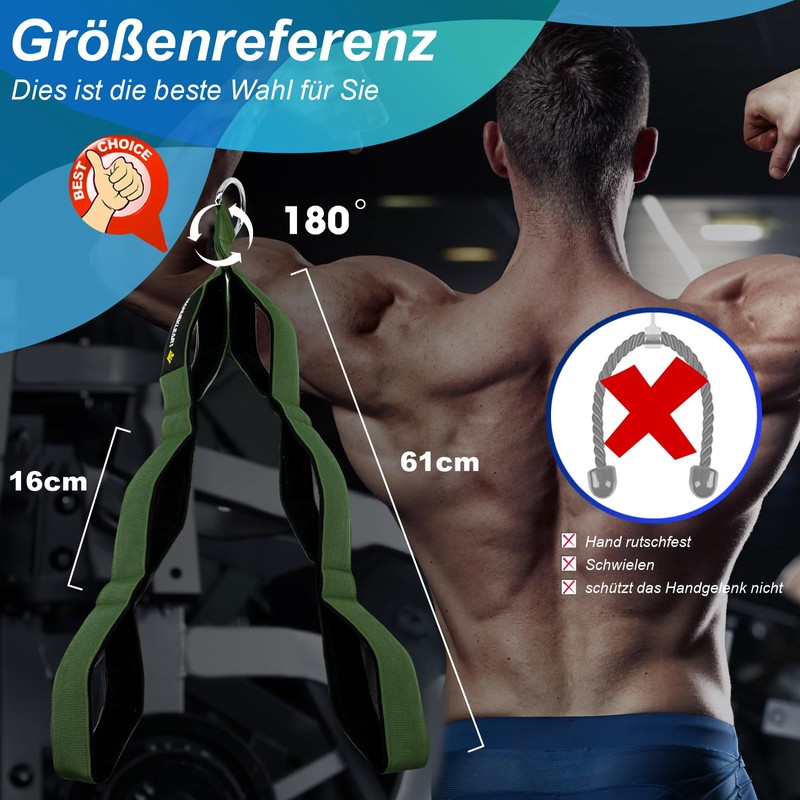 - Great for increasing triceps muscles: improve your triceps, arms, back, abs, buttocks, etc., improve your grip strength. Get better workout results. And versatile, perfect for wefters, abs, cable crosses or any reel system.