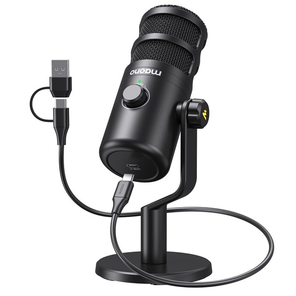 MAONO USB Dynamic Microphone, Podcast Recording Microphone with Gain Knob, Pl...