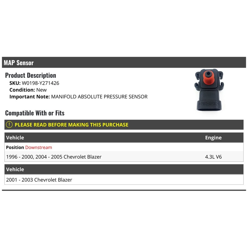 MAP Manifold Absolute Pressure Sensor - Compatible with 1996-2005 Chevy Blazer 4.3L V6