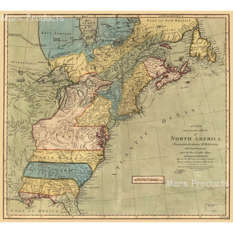 Map of the 13 Colonies North America 1771 Colonial Map - 20x22