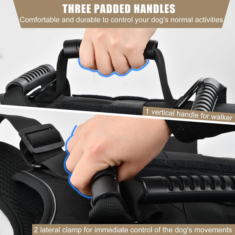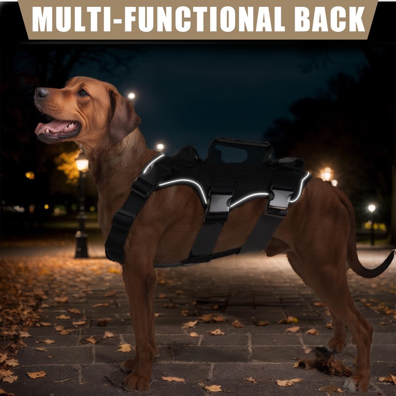 Mapille Dog Harness with Lead, Dog Harness with Handle, with 3 Handles and 3 D Rings, Reflective, Breathable, Chest Harness for Medium, Large Dogs (M)