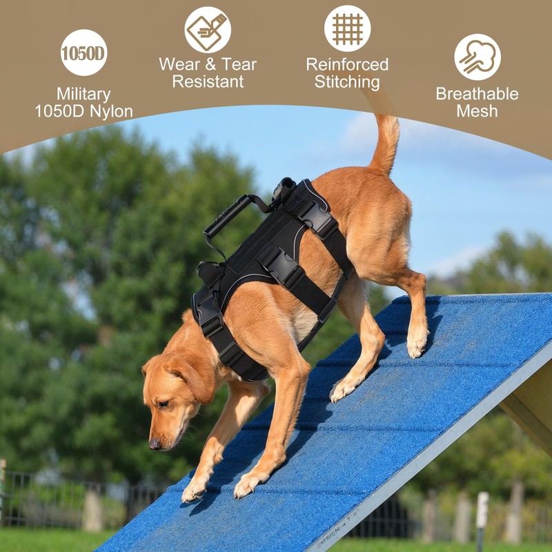 - Comfortable and durable: Our dog harness set with lead is made of 1050D nylon, which is durable, dustproof/waterproof/wear-resistant and can even distribute the pressure of the shoulder straps on the chest and shoulders to avoid strain on your pet.