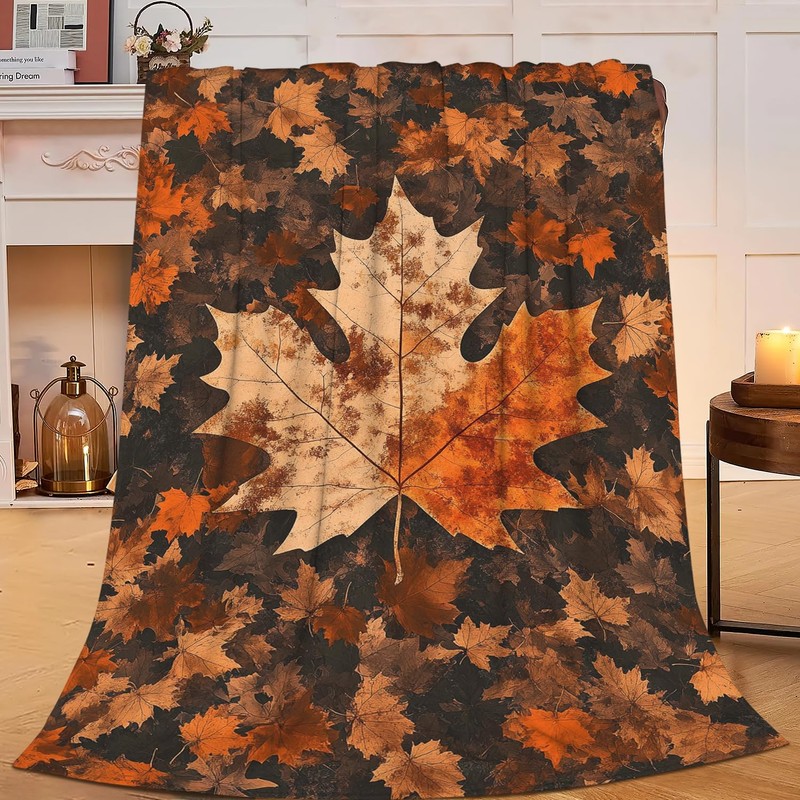 Maple Leaf Blanket Fall Autumn Throw Blanket Thanksgiving Orange Flannel Stuff Merch Cozy Decor Fleece Soft Plush Fuzzy Warm Lightweight Bedding Gifts for Women Men Girls Couch Soft 50"X40"