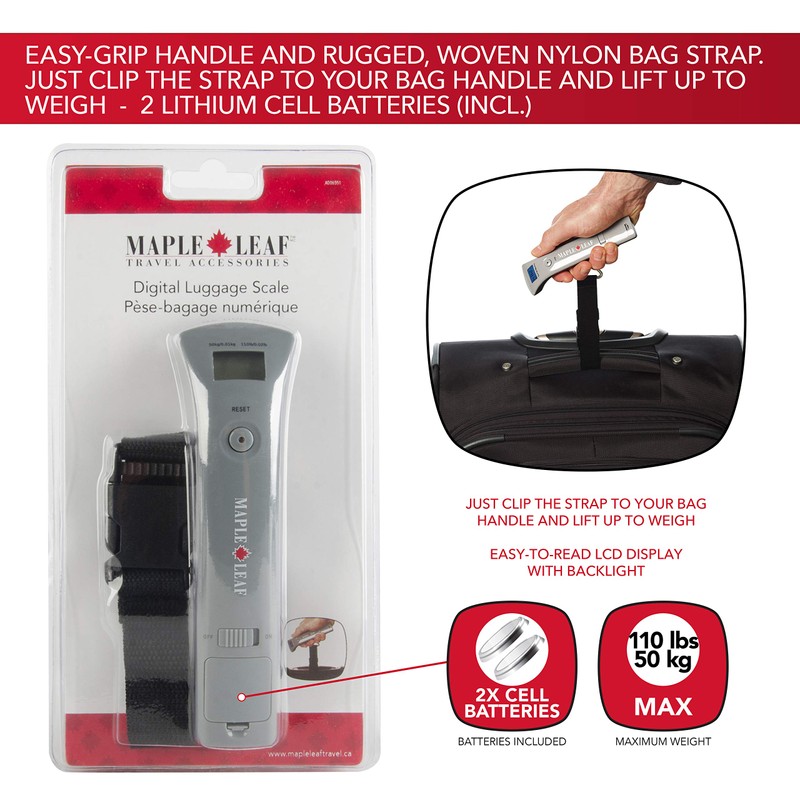 - Compact digital scale lets you weigh your suitcase prior to travel to avoid overweight baggage charges