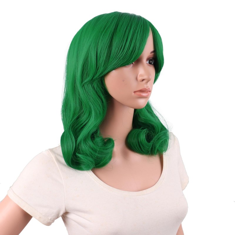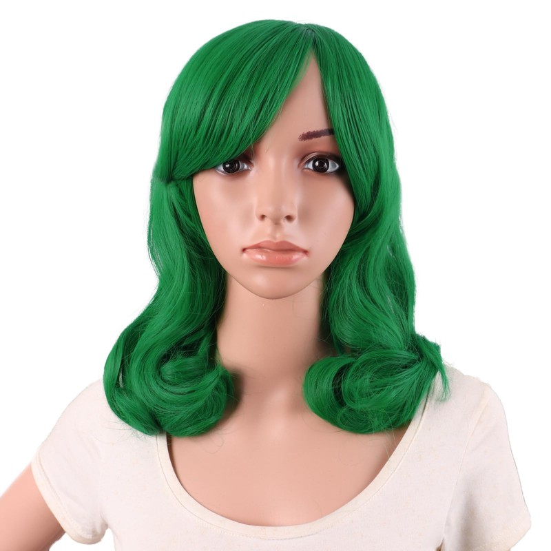 MapofBeauty 16 Inch/40 cm Short Side Bangs Medium Curly Wig (Grass Green)