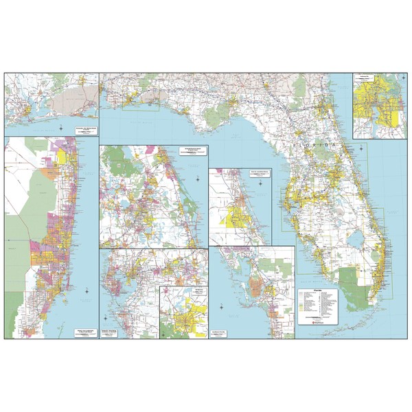 MapSherpa: Florida State Wall Map - Large - 32 x 48 inch Poster - Front Lamination