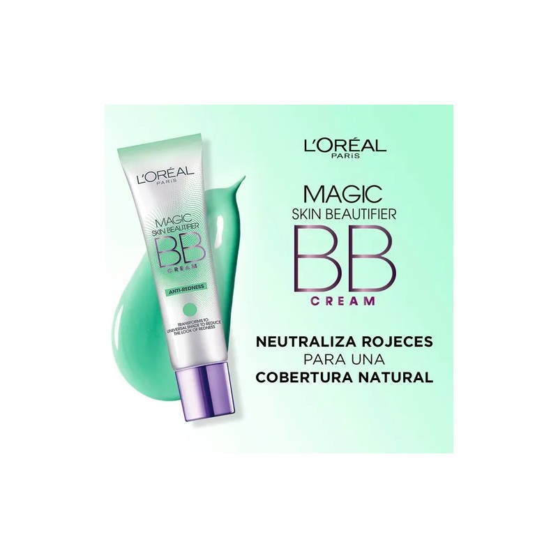 Maquillaje Facial Magic Skin Beautifier BB Cream, Neutraliza Rojeces, y unifica tu tono para una Cobertura Natural de L'Óreal Paris