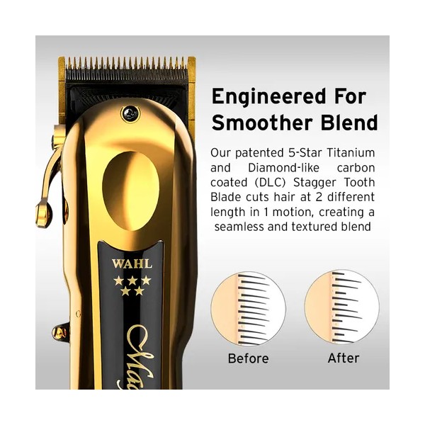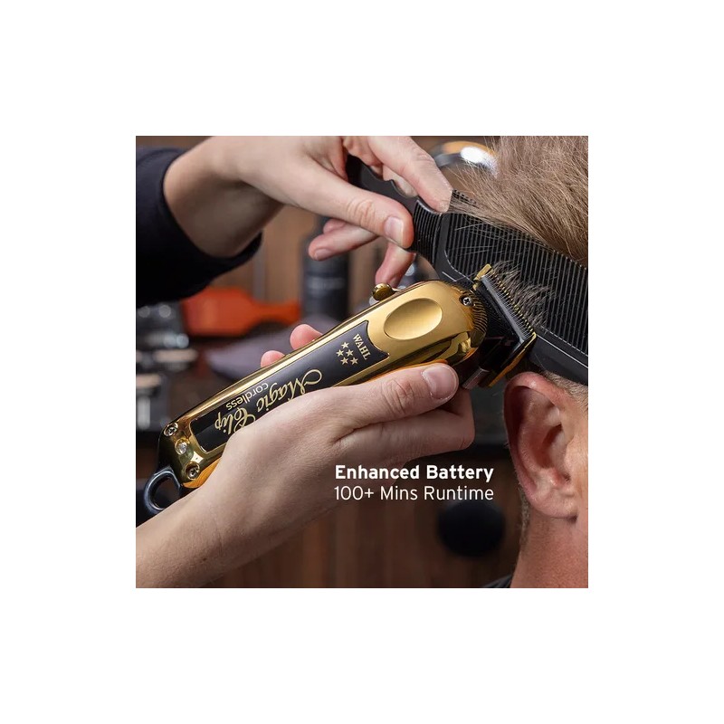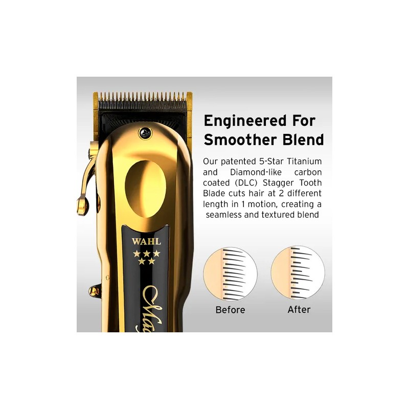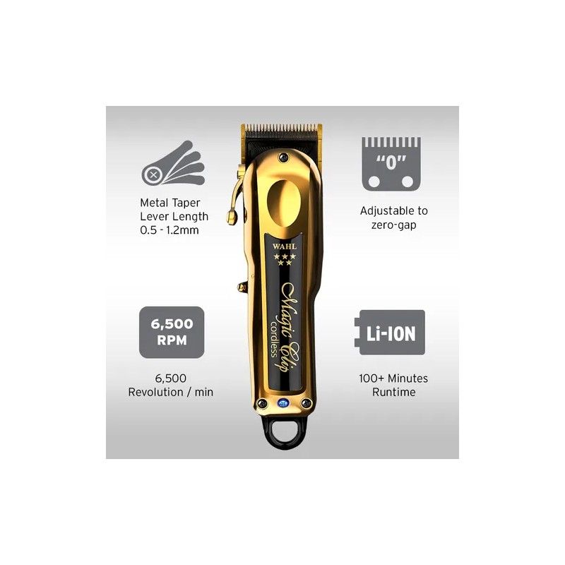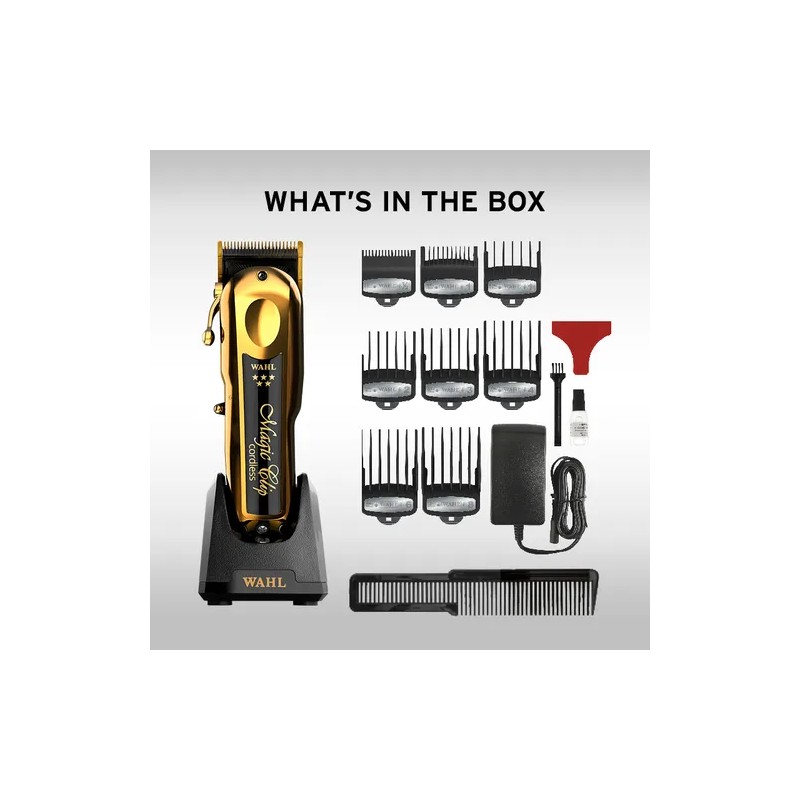 Wahl® Nuevamente nos sorprende y nos presenta la Magic Clip Gold Cordless, este modelo es espectacular en su exterior, pero aún más en su interior.