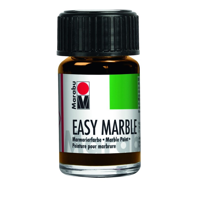 Marabu Easy Marble is a great way to create marbling effects in just seconds. Simply drip the paint into water and then dip your item in. You can create unique and fascinating designs with every dip! Perfect for use on a variety of surfaces from wood and plastic eggs to silks and other fabrics. Try it on candles and even papier mache! Paint is lightfast and is dry to the touch in just 15-20 minutes. Made in Germany with organic solvents. Available here in a 15ml bottle in Gold.