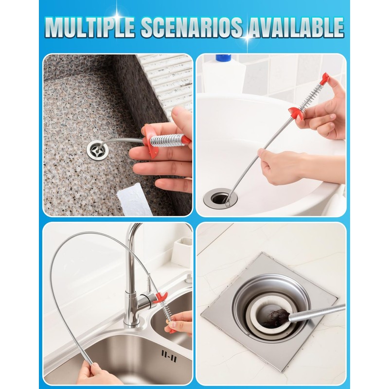 - [ Multi-scenario use ] You can use the snake drain clog remover when facing different drain blockages, such as kitchen, bathroom, sink, bathtub or shower drain, sewer and floor drain, but it should be noted that the diameter of the pipe should be between 0.5 inches and 3 inches, and it is not suitable for toilet blockage.