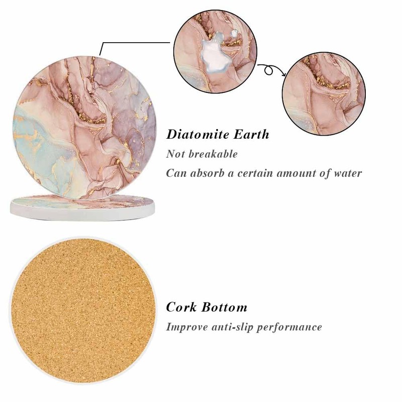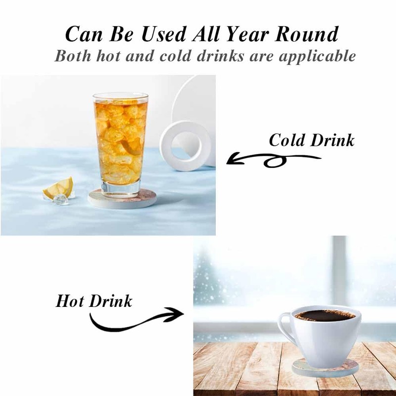 - Coasters For Drinks:Includes 2 pcs 4" Round ceramic coasters and about 0.35 inches thick,suitable for most of glasses, mug, cup.