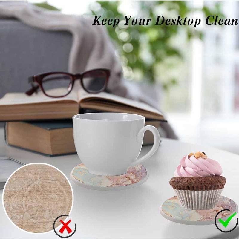 - Non-Slip Bottom: Each ceramic coaster is equipped with a cork back pad, can not only prevent table from worn and scratched, but also make the coaster firmly attached to the desk.