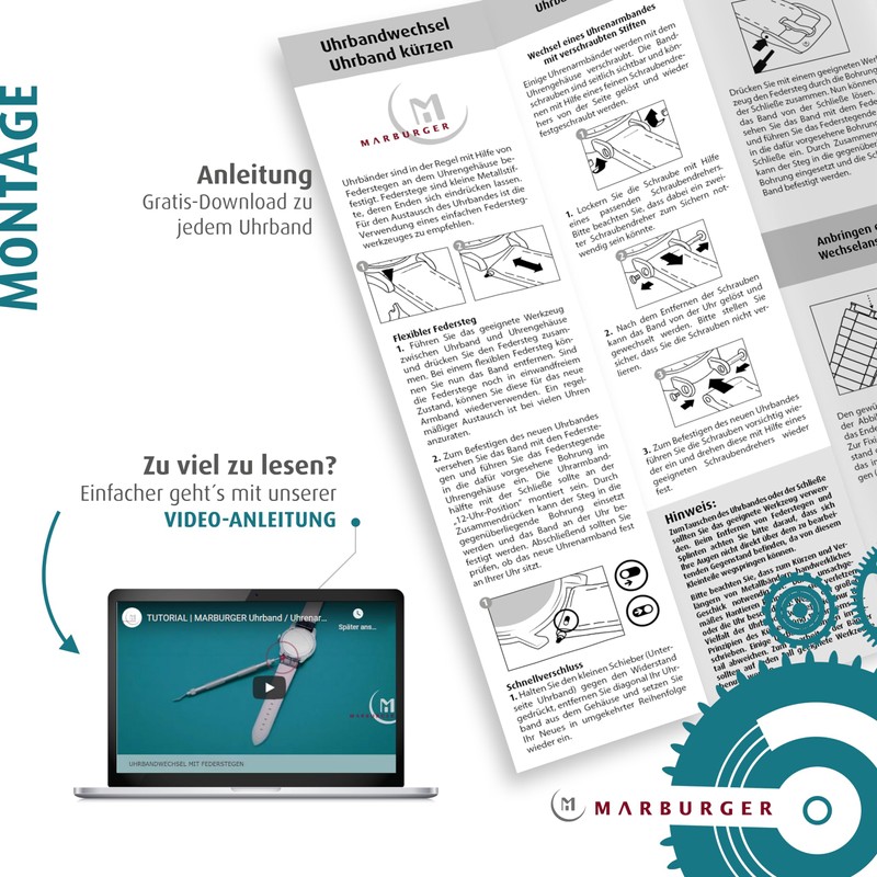 - Satisfaction guarantee – includes easy-to-understand assembly instructions (English language not guaranteed) for free download in 6 languages (DE/EN/FR/IT/ES/NL). If you have difficulty changing the replacement strap, our experienced service team can help you competently or give you a service point near you