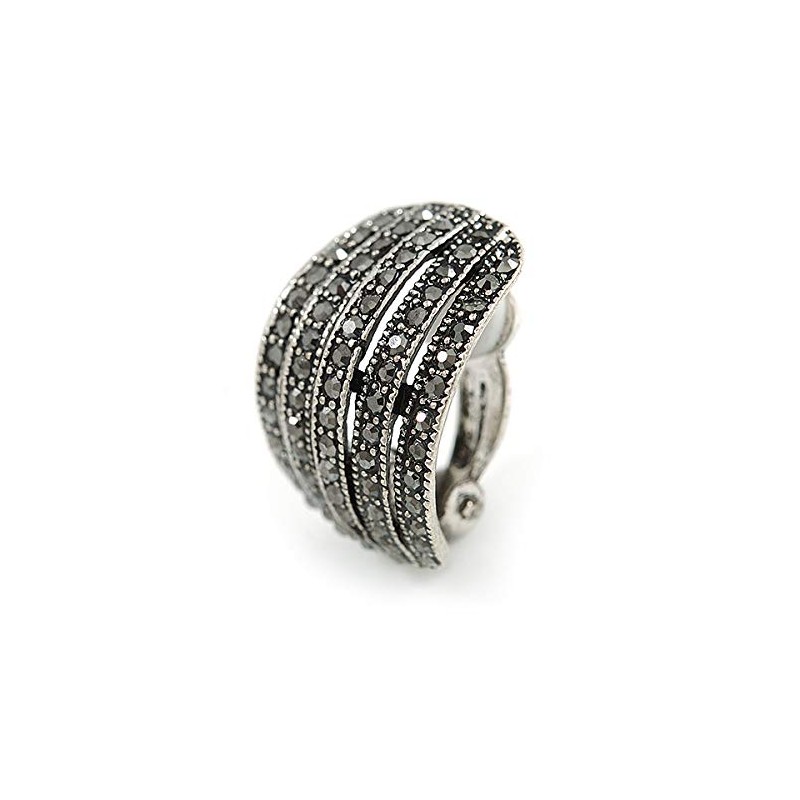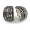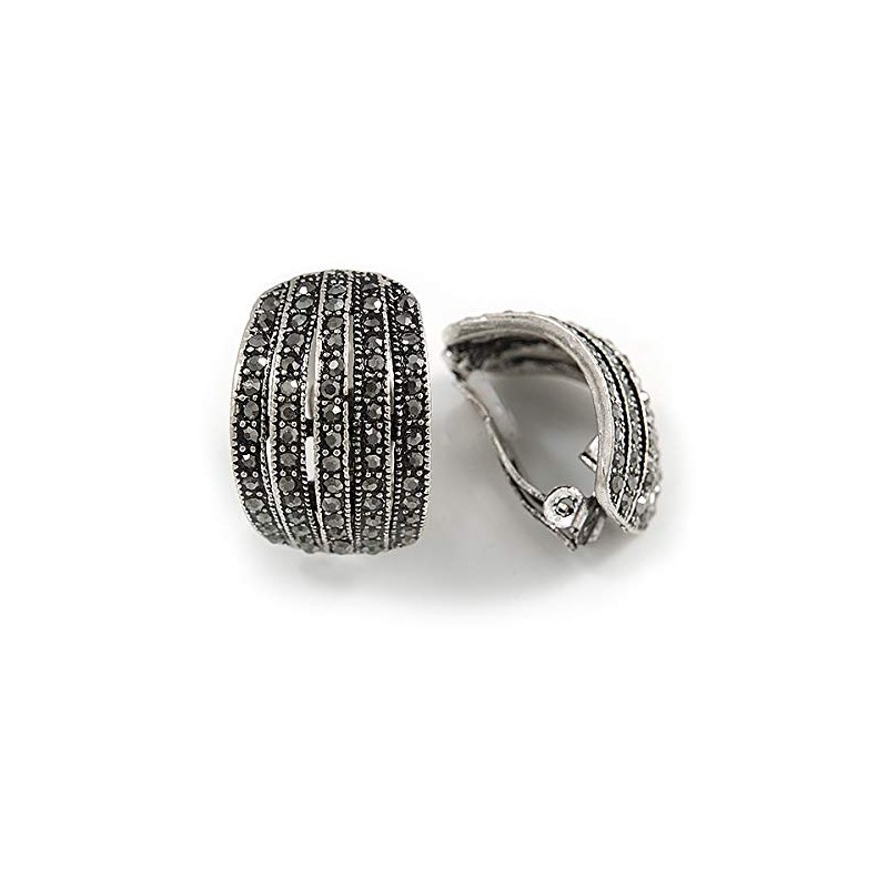Marcasite Style Crystal C-Shape Clip-On Earrings/Aged Silver Tone - 23mm Tall