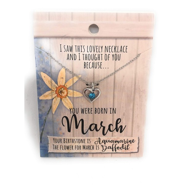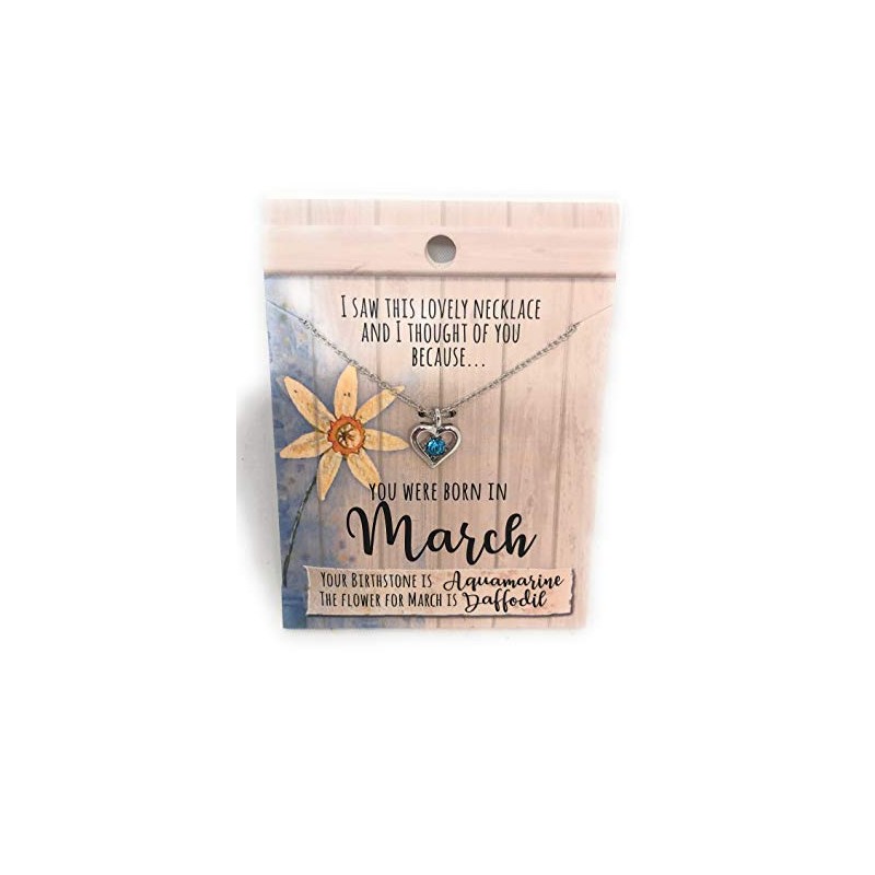 March Birthstone Necklace, I Saw This lovely Necklace and Thought of You because you were born in March, Birthday, Christmas, Gift, Stocking Filler with Heart shaped Birthstone Necklace pendant on a 42 cm chain with wording on the card saying - March Another quality product from Royal County.. A beautiful heart shaped pendant with blue birth stone attached to a card with the wording...... I Saw This Necklace and Thought of You because you were born in August -