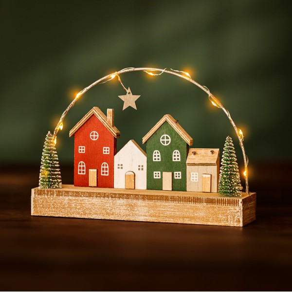 - Christmas Decoration: Add a homely vibe into your Christmas decor with this Light up Village Scene. Perfect for any style of household decor or festive decorating, this wooden ornament is a fun way to make eveery day of the festive period that bit extra special.