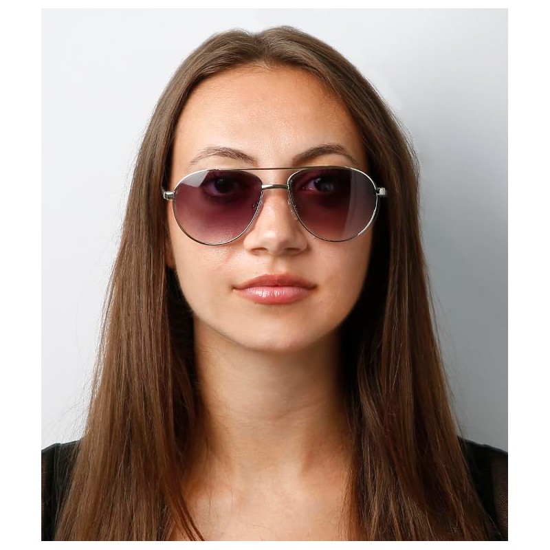 Marcolin Eyewear Women's Metal Sun Glasses Polarized Oval Sunglasses, Shiny Light nickeltin, 58/18/140