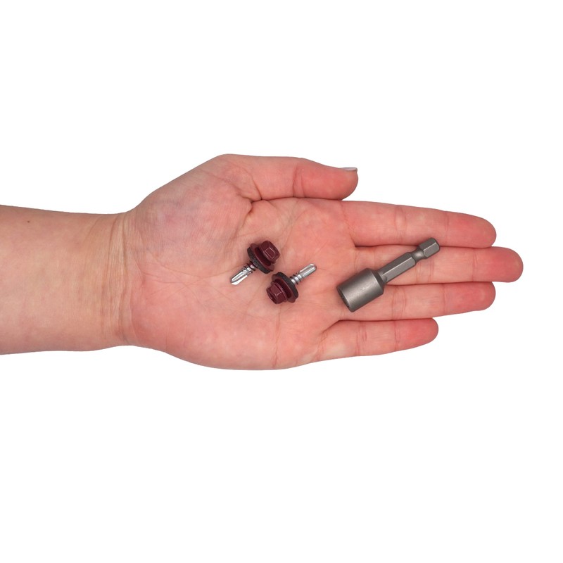 - ✔️ Packaging: 150 pieces screws Size: 4.8 x 19mm Screw head and washer Color: RAL 3005 1 x Magnetic Hex Nut Screwdriver Bit is included. DIN 7504-K standard