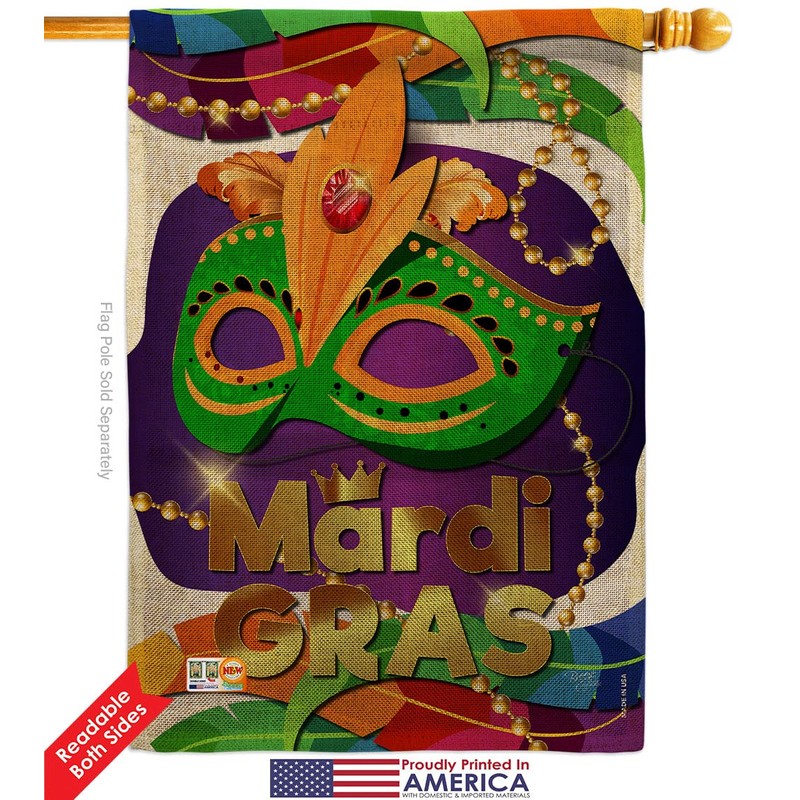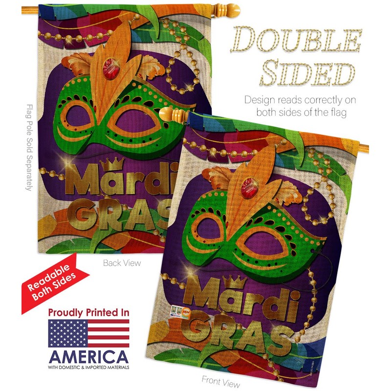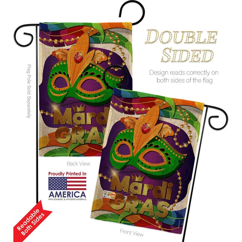 Mardi Gras Mask Garden House Flags Kit Springtime Carnival Festival Masquerade Celebration Season Holiday French Small Decorative Gift Yard Banner Double-Sided Made In USA 28 X 40
