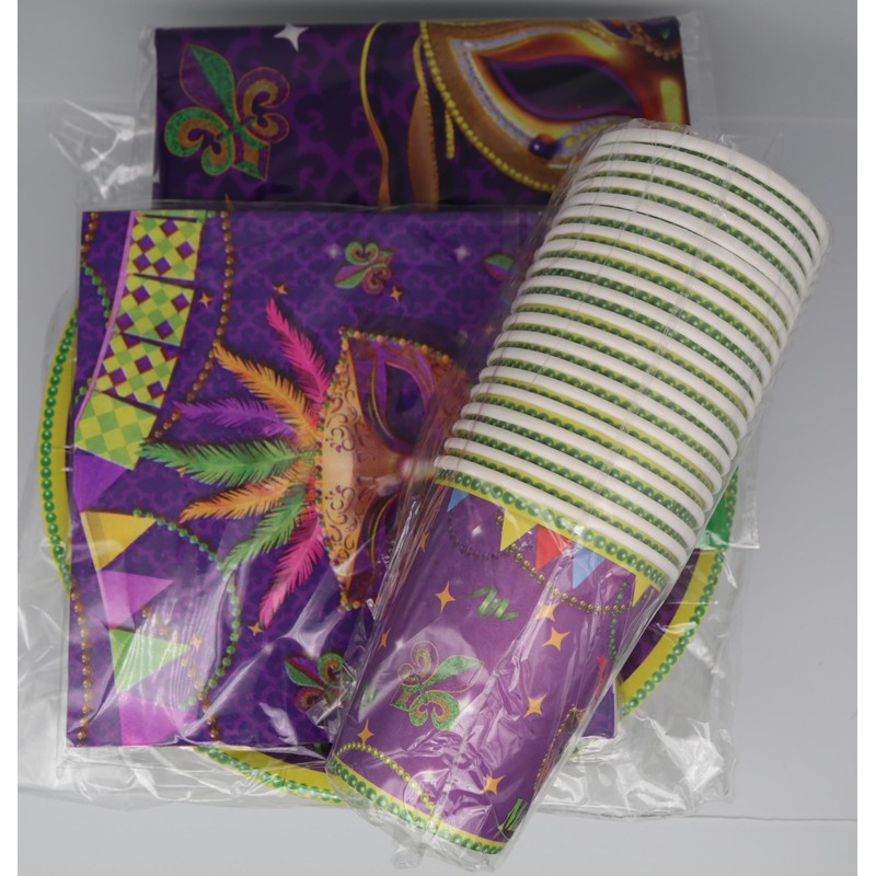 Mardi Gras Mask Party Tableware, Party Tableware Decoration with 61 Pieces Including Cups, Plates, Napkins, Table Cloths, Suitable for a Mardi Gras Party for 20 People